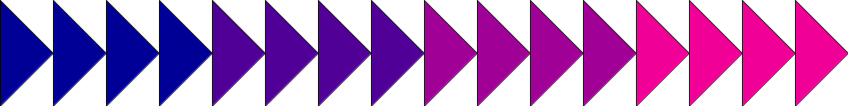 You can choose your own colors, but each group of four triangles should be the same color and the color of successive groups should change smoothly, as shown. (In the example, the red component of the color increases to the right.)