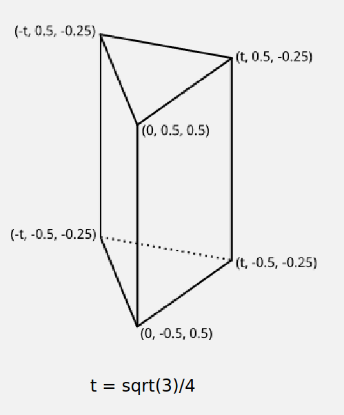 If you are defining vertex normals (optional), also keep in mind that the prism is a polyhedron, not a polygonal mesh approximating a smooth surface. You'll want flat shading and thus polygon normals rather than vertex normals.