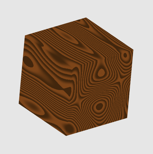 A wood texture also involves gradients between two colors. The wood3D function in the fragment shader contains a skeleton implementation for a blending of two colors, similar to the starting point for the stripes. As with stripes, your task is to replace the hardcoded 0.5 value for blend to produce a wood grain texture as noted by the TODO comment — follow the steps below. Feel free to change the two colors defined, though keeping some sort of shades of brown will help the texture look more like wood.