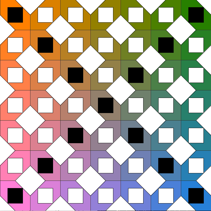 In this exercise you'll create a sketch which displays a variation of a block star quilt, as shown. (To see the star pattern, focus on the regions with color rather than the black and white shapes.)