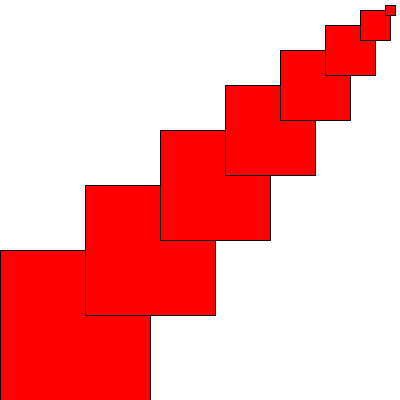You can choose your own colors, but each group of four triangles should be the same color and the color of successive groups should change smoothly, as shown. (In the example, the red component of the color increases to the right.)