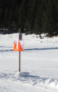 Ski orienteering is the sport of cross-country navigation on skis — competitors must navigate to a series of checkpoints (called controls) using a map and compass. An orange-and-white flag marks the location in the terrain. Controls typically must be visited in a particular order, and the goal is to navigate to a certain sequence of controls as quickly as possible.