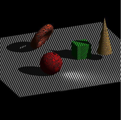 Running the program now should result in shadows being visible...but you'll probably also see a strong moiré pattern known as shadow acne.